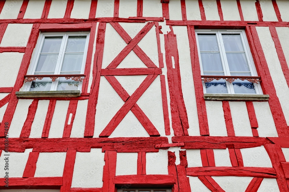 Quadro em tela Windows of typical half-timber house in medieval city of Provins, France