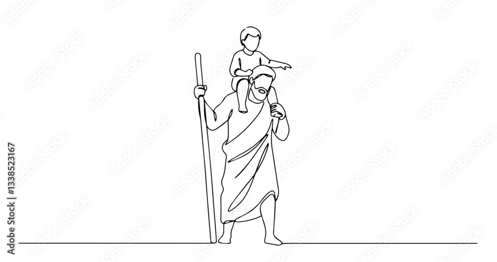Quadro em tela saint christopher carrying child in one line art style