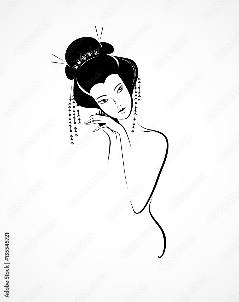 Quadro em tela Graphic vector image of Japanese women, geisha