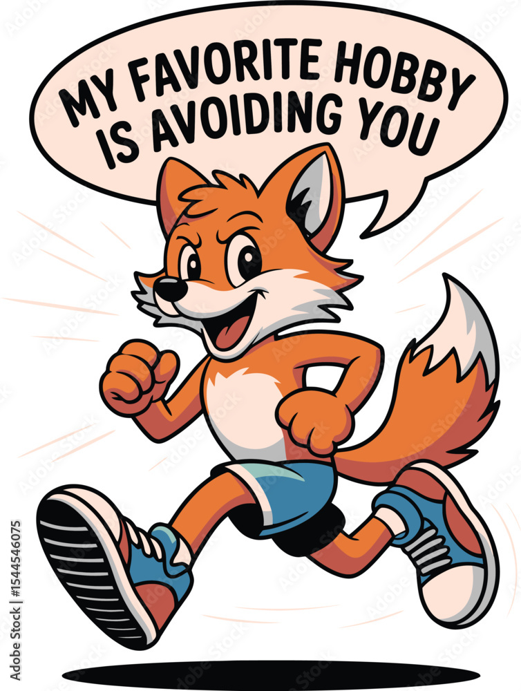 Quadro em tela Funny Running Fox Cartoon My Favorite Hobby is Avoiding You