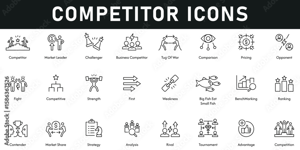 Quadro em tela Competitor Icons vector illustration with thin line editable stroke containing a