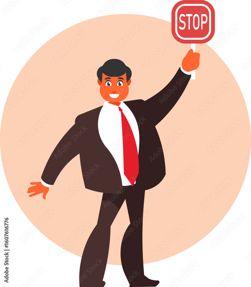 Quadro em tela "Businessman Holding a Stop Sign"