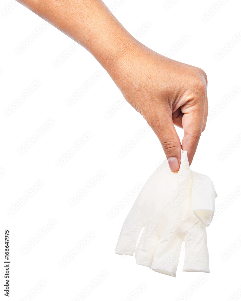 Quadro em tela Hand throwing away white disposable gloves medical.