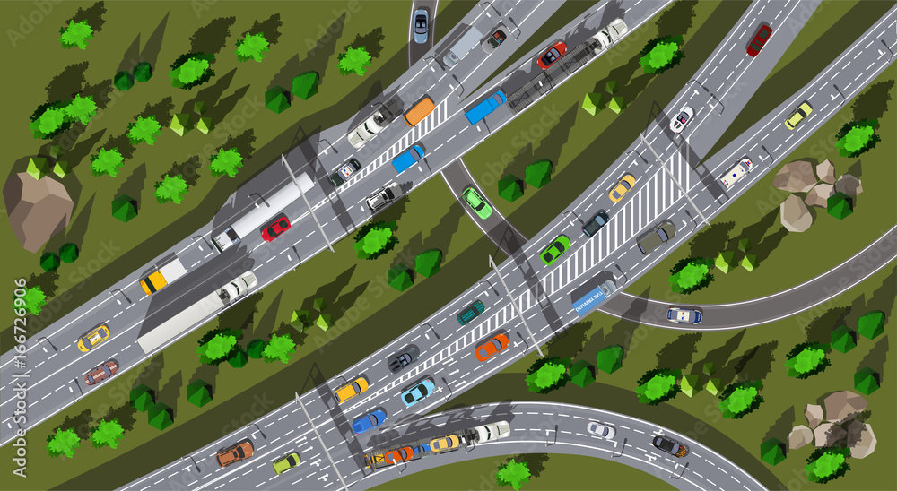 Quadro em tela Top view huge autobahn expressway with traffic.eps