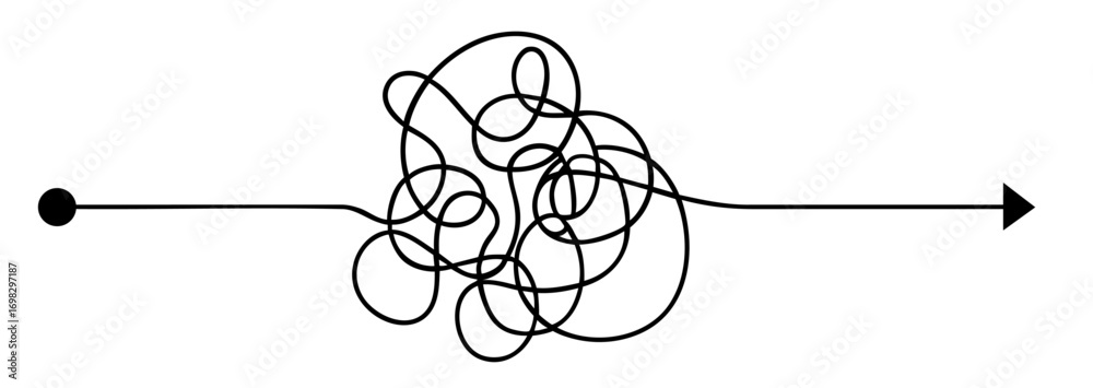 Quadro em tela single path from start to goal passing through a tangled knot of lines, challeng