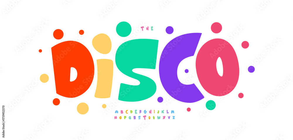 Quadro em tela Groovy bouncy balloon font logo alphabet festive disco bold colorful playful typography for kids birthday, witty carnival poster, quirky funny headline, creative party title text