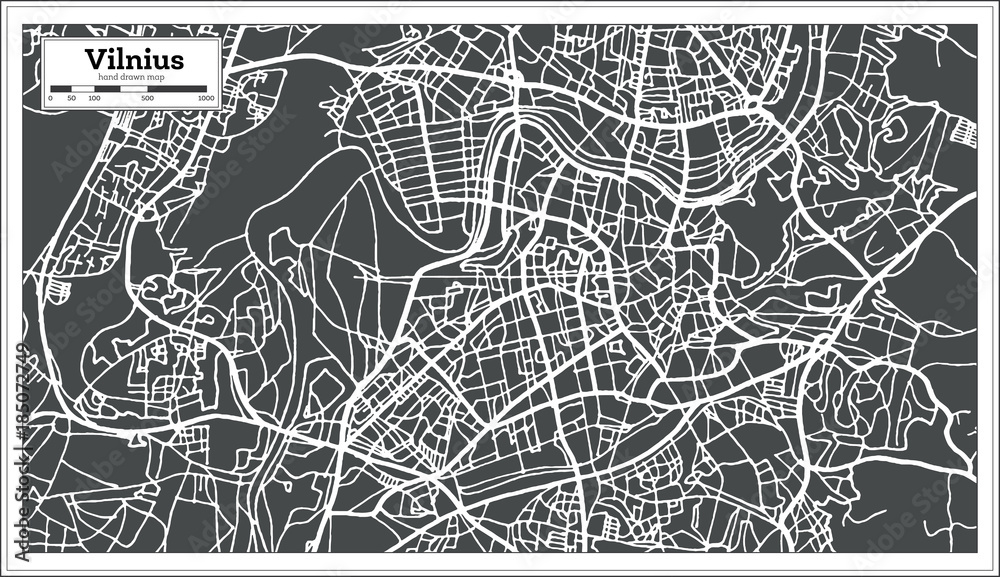 Quadro em tela Vilnius Lithuania Map in Retro Style.