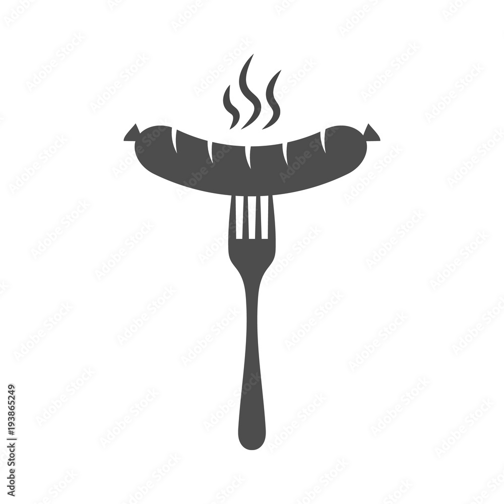 Quadro em tela Sausage on a fork icon isolated on white background.