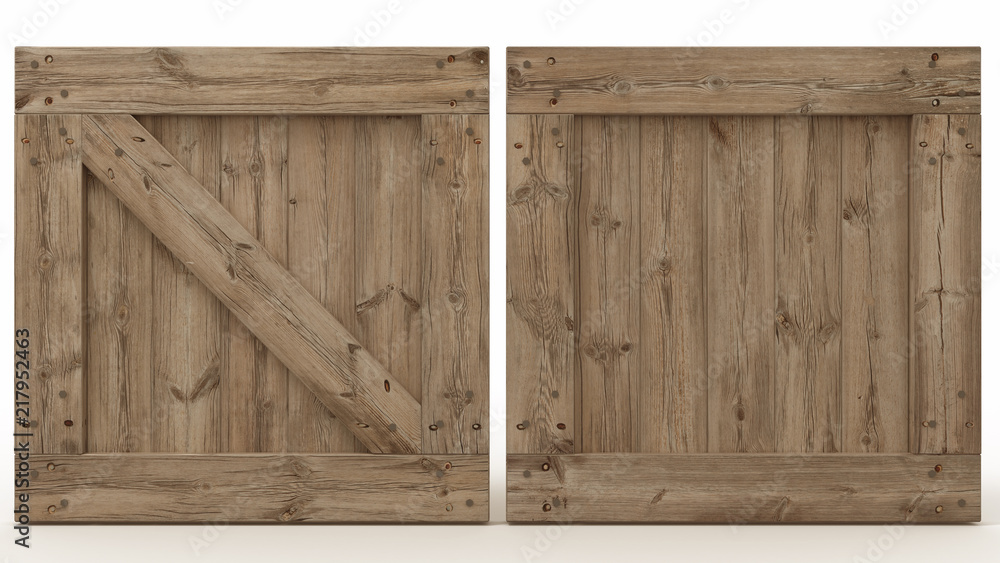 Quadro em tela Wooden crate front view, cargo box texture, 3d illustration