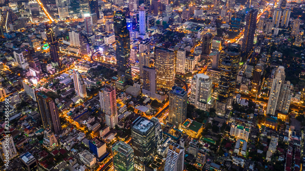 Quadro em tela Aerial view Bangkok skyscraper on Sathorn Road center of business in Bangkok downtown, Bangkok, Thailand