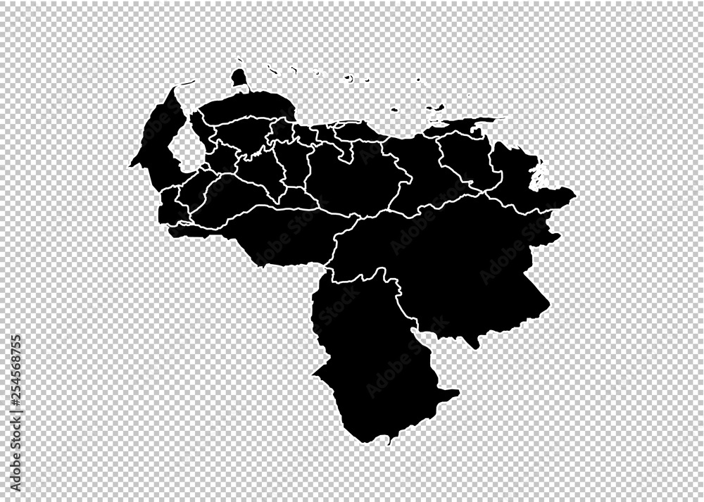 Quadro em tela venezuela map - High detailed Black map with counties/regions/states of venezuela