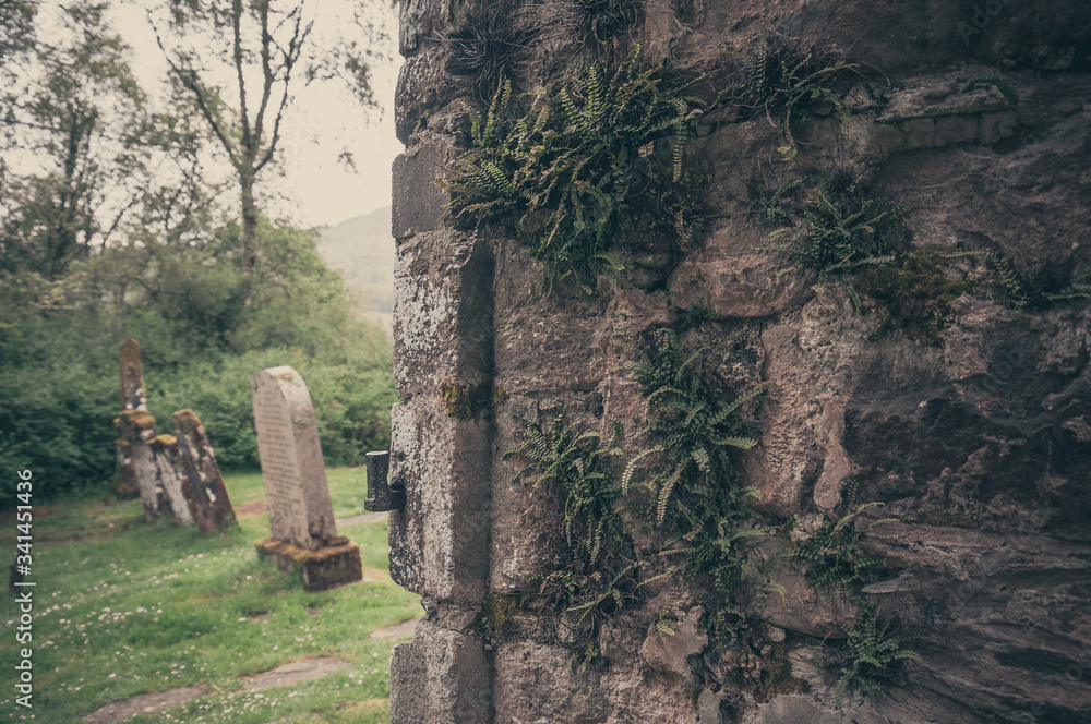Quadro em tela Vintage effect of Asplenium trichomanes on the wall of the Balquhidder church