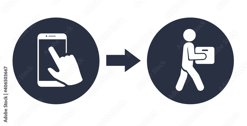 Quadro em tela click buy and collect order, icon, receive order in pick up point, delivery services steps, online store concept