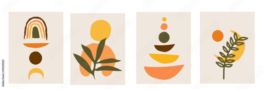 Quadro em tela Collection of modern vector abstractions with geometric shapes and plants in boh