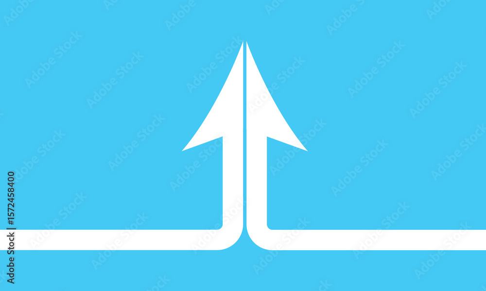 Fotografia Two white half arrows coming together and merging, forming a single arrow on a background