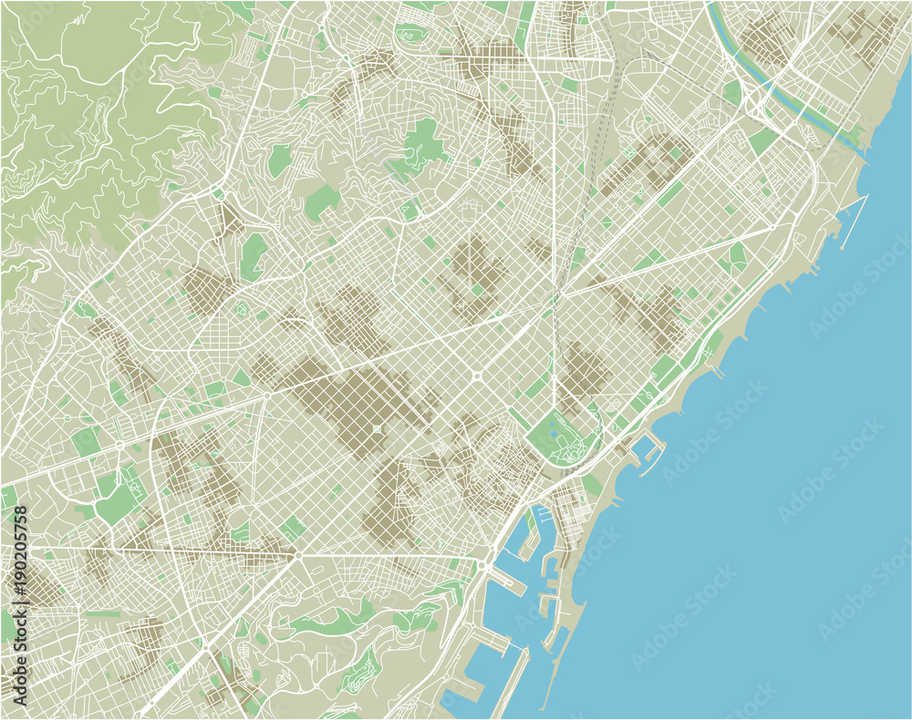 Quadro em tela Vector city map of Barcelona with well organized separated layers