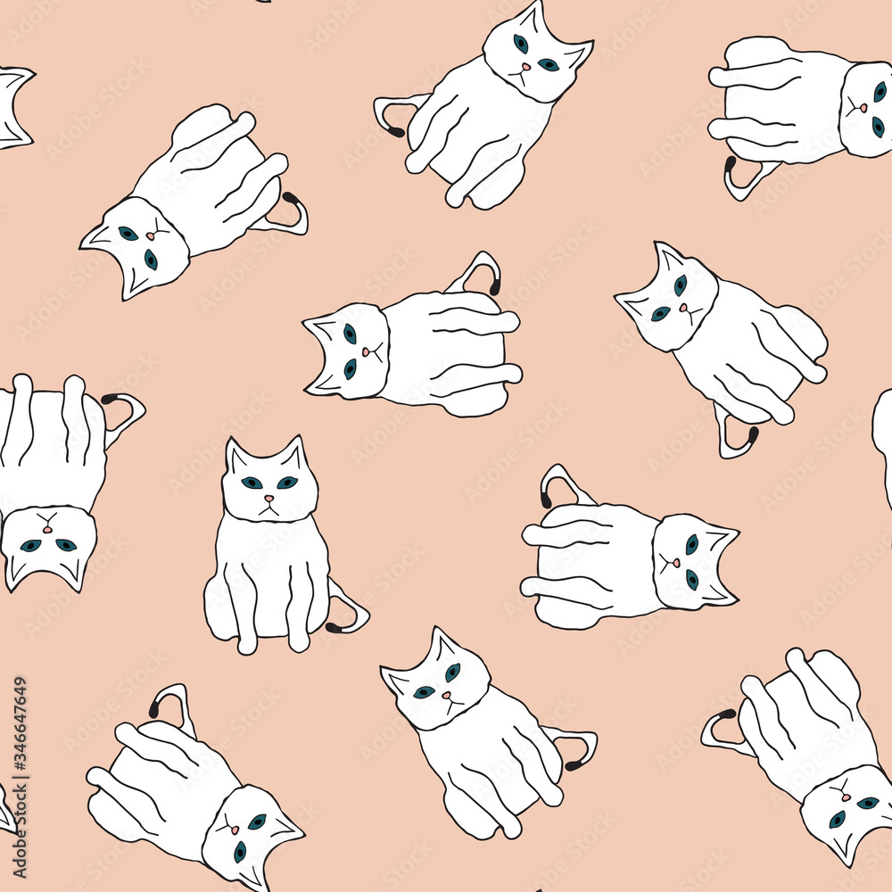 Fotografia Vector white cats seamless tossed multi directional pattern on a peach colored background